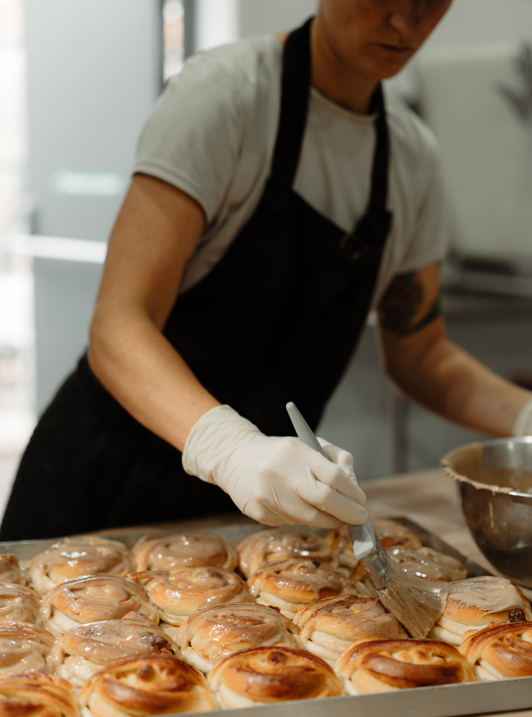 All pastries are handmade, using only natural ingredients. Buns and croissants take 3 days, made with wildfarmed flour and Estate dairy butter